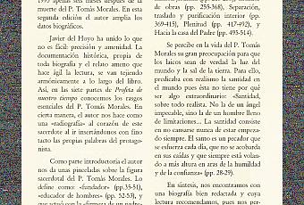 Se cumple el 1 de octubre el XVI aniversario de la partida para el Cielo del Siervo de Dios P. Tomás Morales. Les ofrezco la reseña de la obra más completa sobre su vida y obra “Profeta de Nuestro Tiempo”, de Javier del Hoyo, Editorial Encuentro. Ha aparecido en la Revista Teológica Limense, Facultad de Teología Pontificia y Civil de Lima, Vol.. XLIV, nº 1, 2010, , pp.141.142. Su autor es el P. Carlos Rosell, Director de Estudios de esa Casa de Estudios y Rector del Seminario de Santo Toribio.