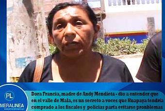 Andy Mendieta Francia (19) perdió la vida luego que una moto furgoneta de propiedad del alcalde de Santa Cruz de Flores (Sin SOAT y placa de rodaje), colisionara con el vehículo donde se trasladabaJusticia. Es lo que esperan los padres del joven Andy Mendieta Francia (19) – quien perdiera la vida luego que una moto furgoneta colisionara con el vehículo donde se trasladaba. El hecho se registró el 26 de diciembre del 2015 en San José del Monte-distrito de Mala.