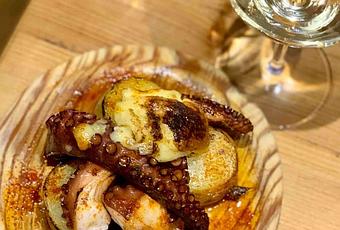 La idea es hacer el producto con la mínima manipulación posible. El pescado, al horno o plancha y prácticamente no encontramos guisos. Si los hay, están pensados como entrantes compartiendo protagonismo con unas croquetas de bogavante y confit de pato, una tortilla de patatas y gambas bien jugosa (tomad nota) o un calamar de cojones con cebolla confitada y jamón ibérico que, por lo menos, cambia algo la forma de presentarlo más allá de “a la andaluza”