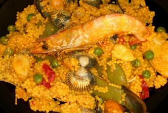 - Cortamos en dados la sepia y la reservamos junto con los berberechos, las gambas, los mejillones y los langostinos.