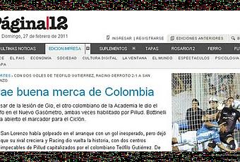 El diario "Página 12" de la República Argentina tuvo la poco feliz idea de retratar el triunfo de Racing ante San Lorenzo con un título poco conveniente al incurrir en un claro doble sentido."Trae buena merca de Colombia" se lee de dos maneras pero, sin dudas, tiende a señalar la relación del país cafetero con el tráfico de drogas.