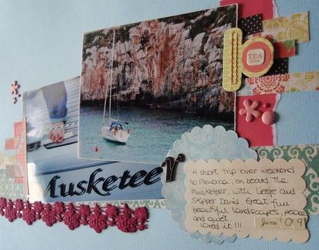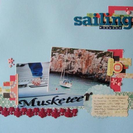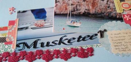 Utilicé retales de papeles para hacer las composiciones detrás de las fotos y que además forman un triángulo visual. Tiene dos títulos, Sailing Weekend y Musketeer, que en realidad es parte de la foto, aunque le tuve que añadir la "r" que al hacer la foto me la comí!