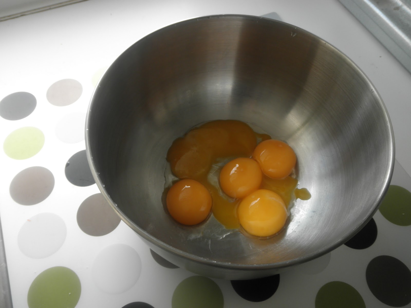 2.- A continuación, pondremos en un bol las yemas junto con los huevos enteros (claras y yemas).