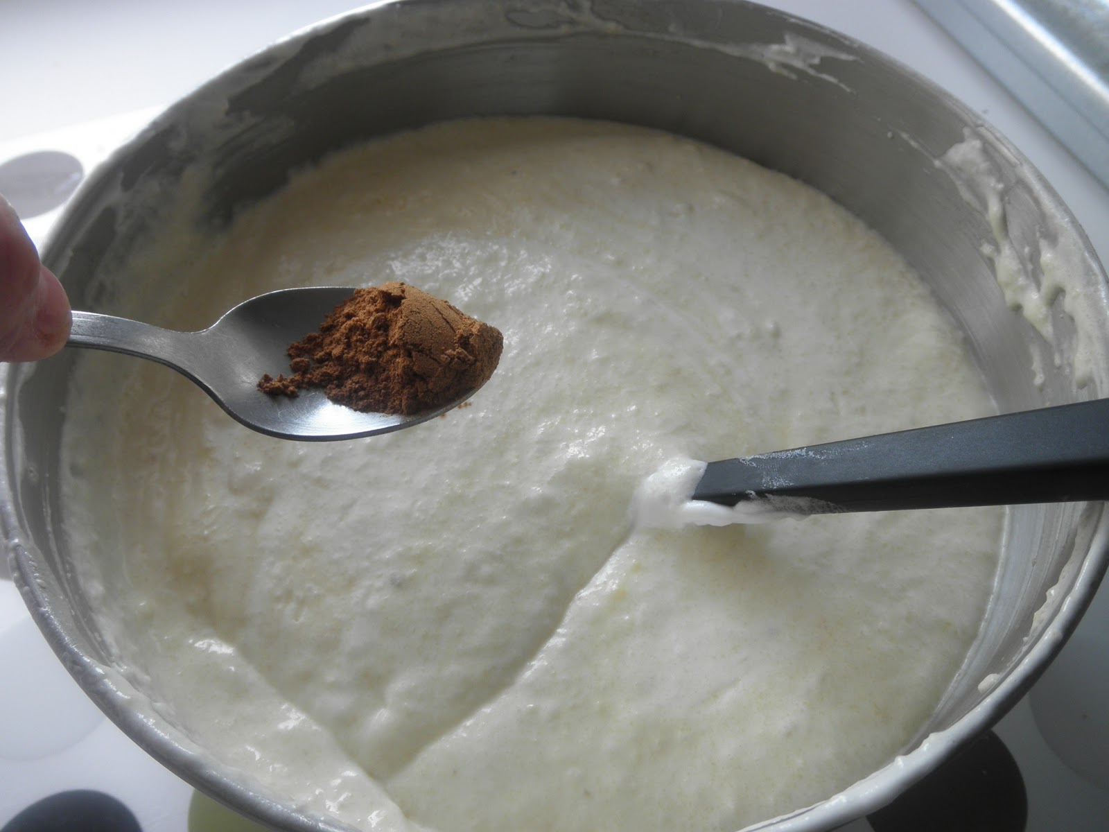 14.- Una vez tengamos una masa homogénea (veréis que cambia completamente la textura de la masa, volviéndose mucho más cremosa, ligera y suave) añadimos la canela en polvo.
