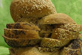 *****************************250 غرامدقيق الابيض ، 250 غرامدقيق 6 بذور (او دقيق القمح) ،300-350 مليلتر ماء دافيء ، ملعقة صغيرة ملح، ملعقة صغيرة ونصف خميرة جافة فورية ملعقة كبيرة عسل.للتزيين: ماء، بذور السمسم، بذور الخشخاش