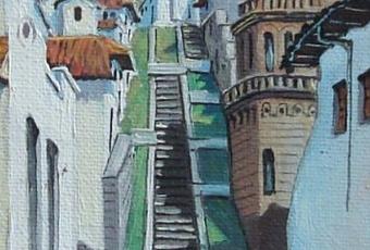 La obra tiene un dibujo complicado por los diversos planos y el efecto de profundidad, aspectos que le mencioné a la estudiante y aceptó el desafío, para lo cual usó la técnica de la Cuadrícula.