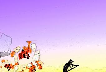 Paisaje sobre fondo amarillo/ morado