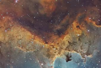 La imagen recogida en Moonrocks Astro, tomada y procesada por Paul C Swift, es un fragmeto de la gran nebulosa del Alma. Lo que vemos parece un gran pájaro cósmico en el que se están formando gran cantidad de estrellas. Una gran nube oscura, que forma las alas del pájaro, oculta una parte de la nueva generación de estrellas jóvenes que son las encargadas de ionizar el gas provocando que la nebulosa brille. El color naranja característico corresponde al rango de gas hidrógeno que envuelve toda la zona. Algunos glóbulos de Bock son visibles en la imagen. En la cabeza del pájaro el polvo y el gas se están condensando para cocinar nuevas estrellas. Situada en la zona del cielo que ocupa la constelación de Casiopea, la nebulosa del Alma está ubicada en el brazo espiral de Perseo de nuestra galaxia a uno 7.000 años luz de distancia de la Tierra. La distancia está bien determinada por los cúmulos estelares situados en el interior de la nebulosa.