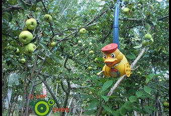 Entre esta feria colgante no falta incluso lo que podríamos llamar “metaespantapájaros”, es decir, aves de peluche y de plástico que también se emplean para impedir que las de pluma y pico se acerquen a picar de las manzanas. Eso sí, esto no impidió que durante el resto del recorrido disfrutáramos de los muy activos papamoscas grises y cerrojillos, que añaden ahora una buena tropa de efectivos en paso.