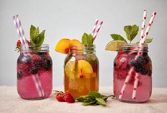 Otra opción son los tarros de vidrio estilo para mermelada. Se puede utilizar para servir una limonada, o cualquier tipo de jugo. Lucen muy bien con pedacitos de fruta y demás decoraciones.