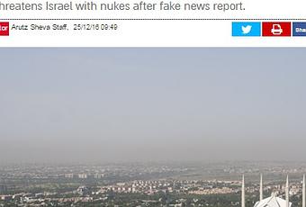 El informe falso, publicado en sitio web AWD, afirmaba que el ministro de Defensa israelí, Avigdor Liberman (de Israel Beytenu) había afirmado que Israel no dudará en utilizar armas nucleares contra Pakistán si este país envía tropas a Siria.
