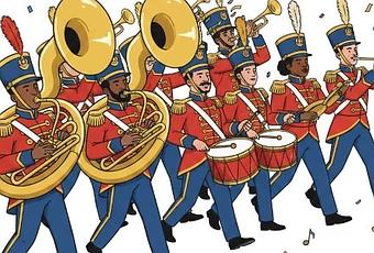 Fanfarria → Conjunto musical ruidoso, principalmente a base de instrumentos de metal. Así, relacionado con la música, se refiere a una banda o conjunto musical de viento-metal y percusión, encargado de tocar temas festivos o ceremoniales, a menudo para desfiles, fiestas o actos de amplísima pompa. En sentido figurado, describe una actitud de ostentación o fanfarronería, es decir, presumir de manera vistosa y a veces poco justificada.