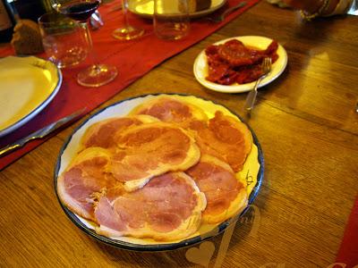 Lacón prensado elaborado por ellos, y los famosos pimientos asados