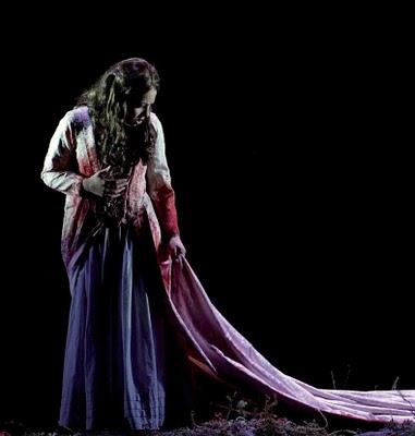 La producción de Graham Vick es ya un clásico en este título, carece de salidas de tono, su principal virtud es que se pliega perfectamente al drama, mediante grandes paneles que se desplazan, a veces imperceptiblemente, de manera horizontal y vertical y que en cada momento dejar ver una parte distinta del colorido paisaje que hay detrás: una luna enorme, un árbol recto, otro retorcido y un campo florido, es capaz de evocar en imágenes de gran belleza plástica todos los escenarios en los que se desarrolla la ópera, las distintas familias lucen indumentarias de distinto color, azul para la de Enrico Ashton, blanco para la de Arturo de Bucklaw y rojo para el Ravenswood. Hubiera agradecido, aunque sé que no es muy popular entre los aficionados, otra producción más arriesgada e innovadora, o menos manida –está grabada en DVD y se ha visto en todas partes, en nuestro país, por ejemplo, se vio en el Real y en el Liceu-, aunque después de ver por televisión lo que hicieron con “Il Trovatore” y su no escenografía casi es un lujo una Lucia de lo más convencional.