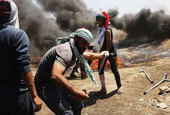 ¿Qué hace el grupo islamista palestino Hamas cuando no está disparando cohetes contra Israel o enviando a los palestinos a enfrentarse con soldados israelíes a lo largo de la frontera entre la Franja de Gaza e Israel? Envía a sus oficiales de seguridad a arrestar, interrogar, intimidar y hostigar a cualquiera que se atreva a criticar a Hamas. En la foto: los palestinos en Gaza se preparan para atacar a los soldados israelíes en la frontera con Israel el 14 de mayo de 2018. (Foto por Spencer Platt / Getty Images)