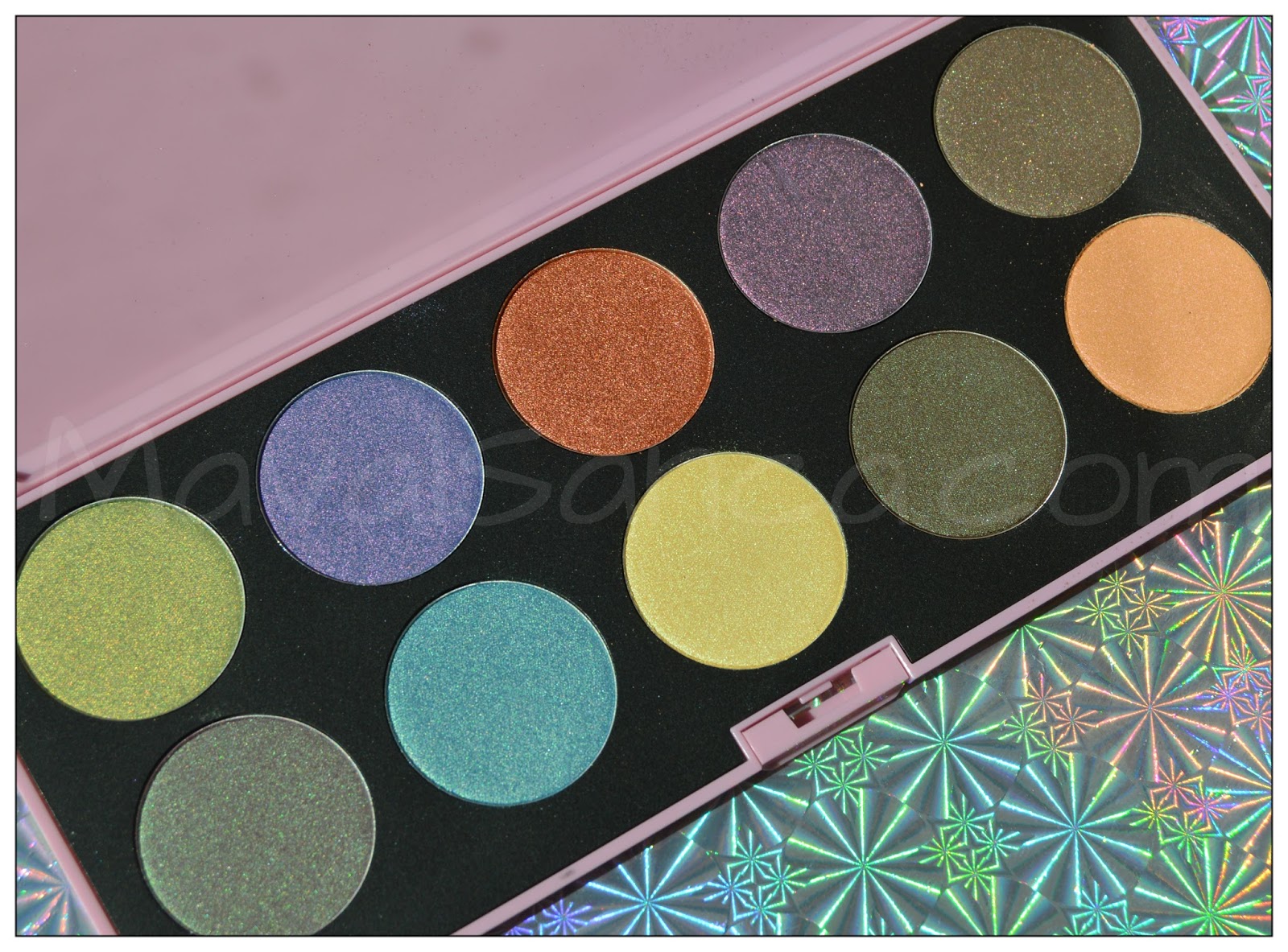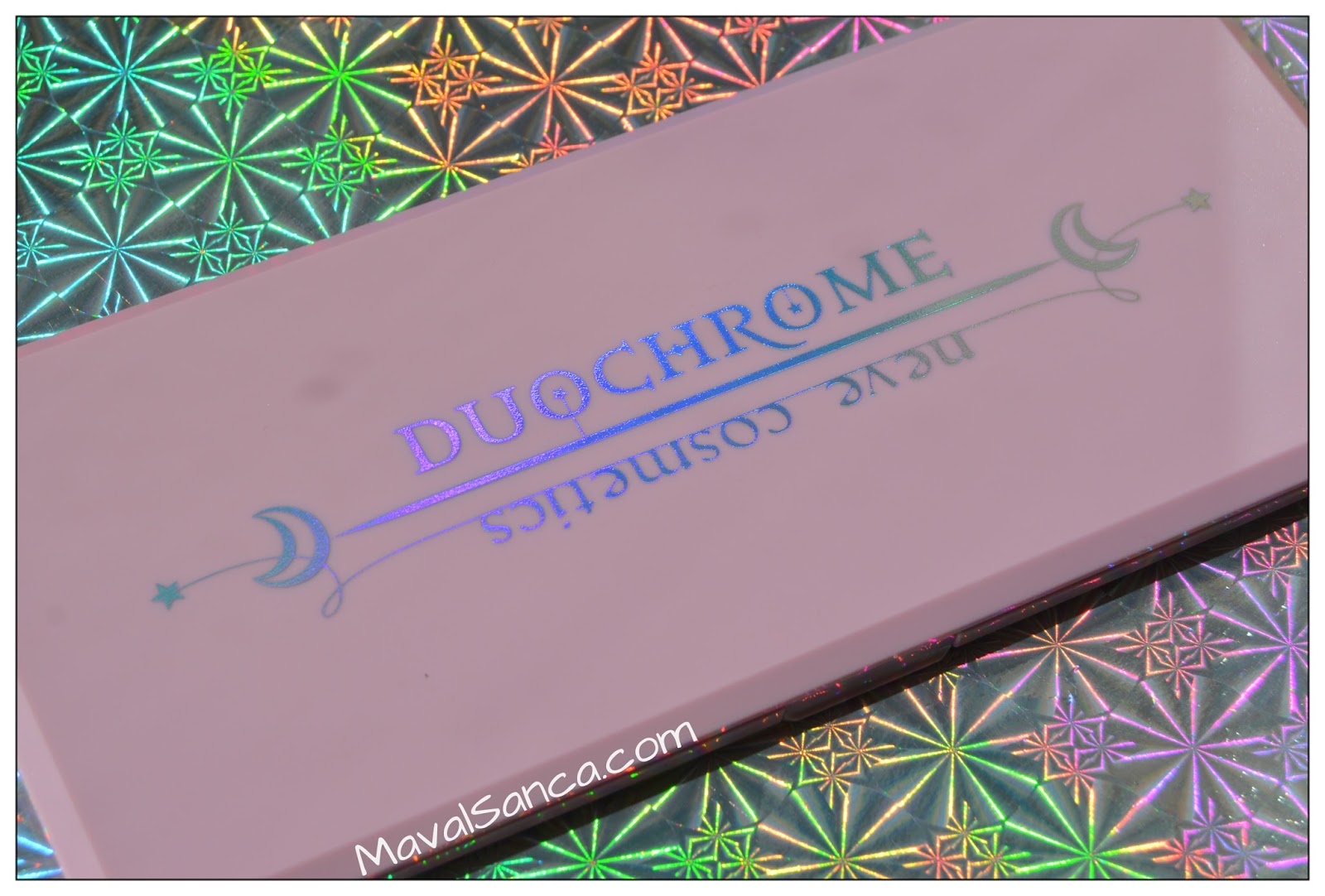 La Duochrome de Neve Cosmetics contiene diez sombras tornasoladas del diamétro estándar 36 mm (el mismo que las de KIKO y ESSENCE).