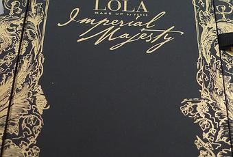 La paleta se llama Imperial Majesty es una preciosidad, como podréis ver en las fotos que acompañan este artículo. Su forma es de un antiguo espejo dorado Barroco, muy planita pero grande, con el fondo negro y dibujos dorados imitando la marquetería de los espejos de aquella época. La Directora Creativa de LOLA se inspiró en el esplendor puro de palacios como el Hermitage de San Petersburgo, la riqueza de los materiales nobles utilizados en su construcción, la complejidad de la arquitectura y de la ornamentación interior y las habilidades de los artesanos que crearon aquel esplendor. La verdad es que la paleta es muy bonita, muy coqueta y original.