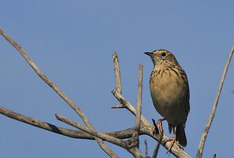 Unas imágenes que obtuve en el terraplén del desaparecido Ferrocarril de "trocha angosta" en las inmediaciones de la diminuta localidad de Francisco A. Berra son de un ave que al menos yo no veo muy seguido, quizás son escasas o frecuentan ambientes que no recorro mucho, es la cachirla pálida (Anthus hellmayri). Era una pareja que posaba en las ramas de unos árboles jóvenes al costado del mismo terraplen, habiendo un hábitat propicio del otro lado: un campo bajo con pastos cortos debido al ramoneo del ganado. Me permitieron hacer unas tomas a pesar que me desplazaba en un pastizal muy denso que no me permitía avanzar cómodo y sin hacer ruido, estas son las que rescato de ese día a comienzos de mayo.