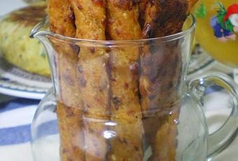Unos palitos de chorizo y queso curado con semillas de sésamo o ajonjolí integrados en la masa, ideales para un tentempié o aperitivo como su nombre indica.Son muy fáciles de hacer y lleva pocos ingredientes, pero están de rechupete.No dejeís de hacerlos y contadme que os parecen.Ingredientes: