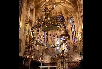 Entre las cosas que pueden destacarse esta su tamaño ,que como ya dije impresiona desde afuera, que estando dentro la hace ver muy espaciosa y como si no hubiera nada que interrumpa la vista. La luz que ingresa por los diferentes rosetones y ventanas hace que su apodo "la catedral de la luz" tenga sentido. Particularmente me llamo mucho la atención la impronta, la belleza singular y el desafío constructivo del rosetón de la fachada. Adentro la Capilla de la Santísima Trinidad se destaca por su belleza y otra vez su baño de luz. En la Capilla Real esta una de las mayores intervenciones de Gaudí, mas allá de el traslado de una parte del coro y el descubrimiento de la Cátedra Pontifical de Mármol Blanco, esto es el Lampadario-Baldaquino que diseño el mismo Gaudí y se reconoce por su fluir en el diseño así como por su creatividad tan característica.