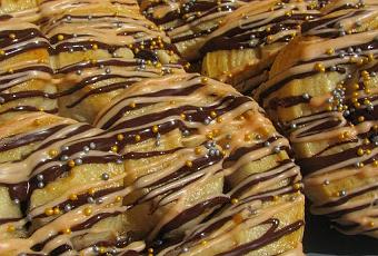 Podéis adornarlas con chocolate fundido, es muy fácil, metéis una cucharita en chocolate fundido y la agitáis rápidamente sobre las palmeritas a toda potencia,jjajajajaj, eso sí, cuidado que mancha!