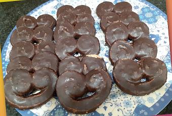 Para meriendas o desayunos unas deliciosas palmeritas de chocolate.INGREDIENTES:1 lámina de hojaldreAzúcar 1 tableta de chocolate negro para fundir de 150 gr1 cucharadas de nata líquida o lecheELABORACIÓN:Extenderemos la masa de hojaldre sobre papel de horno y, sin aplastarla con el rodillo, la espolvoreamos generosamente con azúcar. La vamos enrollando desde los lados sin presionar mucho hasta formar dos cilindros unidos por la base. Volvemos a espolvorear por la superficie y por los lados con azúcar.Con un cuchillo bien afilado vamos cortando el hojaldre enrodajas de 1 cm aproximadamente y las vamos colocando en una bandeja de horno sobre papel de horno engrasado con un poquito de margarina. Las aplastamos ligeramente con la palma de la mano y horneamos a 200º unos 8-10 minutos hasta que vemos que la superficie está doradita. Hay que tener cuidado porque se queman muy rápido. Una ver horneadas hay que dejarlas templar entes de añadir la cobertura.Derretiremos el chocolate con la nata al baño María o en el microondas y vamos cubriendo con él las palmeritas las dejaremos sobre papel de hornear, ponemos un poco en el centro y extendemos con cuidado hacia los lados. Dejamos que enfríen y el chocolate se endurezca.