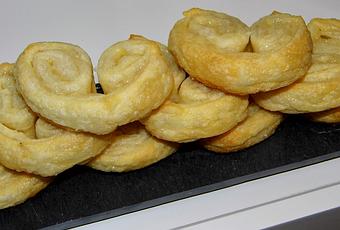 Os pongo un enlace a un paso a paso que tengo en el blog para que veáis el montaje Aquí Y a continuación la receta de Carolina y Aquí su blog 1 tabla de hojaldreMantequilla derretidaazúcar Pincelamos el hojaldre con la mantequilla y espolvoreamos de azúcar, sin miedo. Como en el paso a paso hacemos la forma de las palmeritas y pintamos de nuevo por las partes que esta seco y espolvoreamos de azúcar de nuevo, cortamos y horneamos a 180º hasta que estén hinchadas y doraditas.