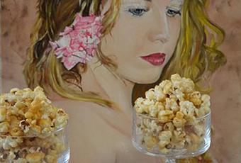 La verdad es que me ha sugerido varias recetas, pero al final me he decidido por estas palomitas de tonos suaves. Como veis en mi casa hay mucho arte, arte en la cocina y arte con los pinceles. Como este reto va de arte, espero que os guste el decorado que he puesto. Un cuadro impresionante de mi marido y esta preciosidad es mi hija Sonia que sirvió de modelo en esta y en otras muchas ocasiones. Ya veis que en mi casa no soy yo la única artista. Estoy en el reto gracias a Estela que me explicó de que iba la cosa, lo que no se es si podré participar todos los meses porque la verdad es que no tengo mucho tiempo.