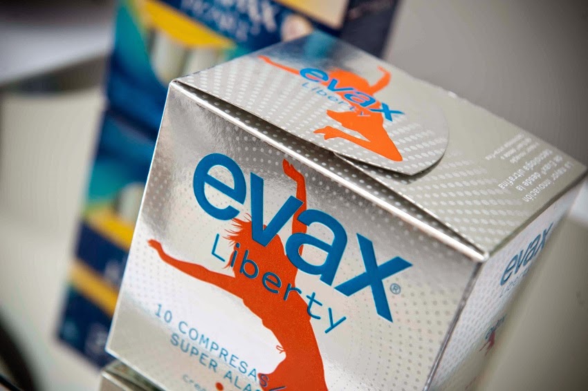 Esto es una pasada, es una nueva compresa de evax, Liberty, que está hecha de un material nuevo que no se arruga ni se mueve, ¡de verdad! Es muy flexible pero no se queda la forma, la he probado y es muy cómoda y limpia. Me parece una revolución.