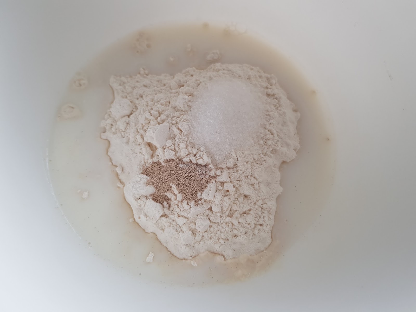 50 gr de leche 25 gr de agua8 gr de azúcar (una cucharita)2 gr de levadura seca de panaderoUna pizca de sal fina4 g de aceite de oliva