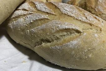 Cuando haya alcanzado el tiempo de fermentación, desgasificamos la masa con los nudillos sobre la encimera enharinada, estiramos con los dedos y vamos doblando para formar el pan, lo amasamos ligeramente y los ponemos en la bandeja del horno, espolvoreamos el pan con harina, le hacemos unos cortes y dejamos fermentar una vez mas.