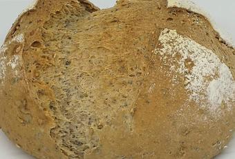 - Con una brocha de cocina, humedezco el pan, le hago unos cortes y le pongo las otras semillas reservadas, o un poco de harina tamizada.