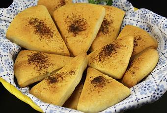 4- Estirar las bolas en círculos del tamaño de un plato de postre, cortar en triángulos como muestra la foto. Pincelar con aceite de oliva, espolvorear con sal, ajo en polvo y perejil picadito.