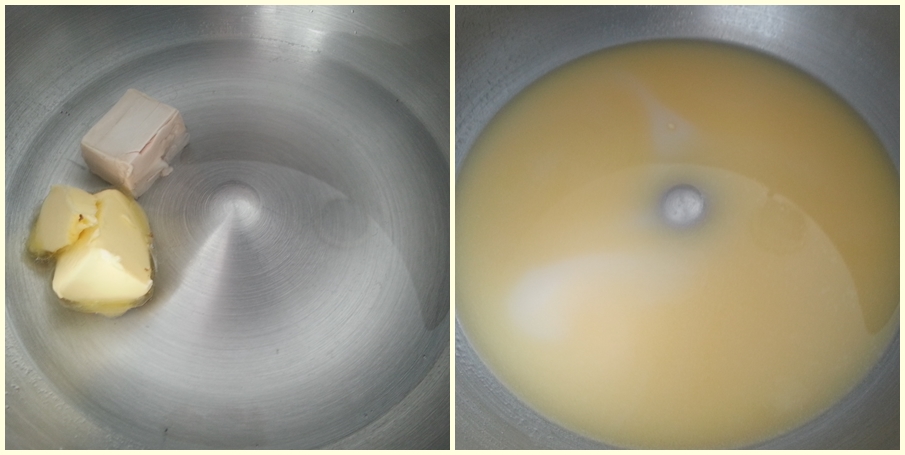 1. - Ponemos en un bol el agua caliente junto con la levadura y la mantequilla, y lo mezclamos hasta que quede todo diluido.