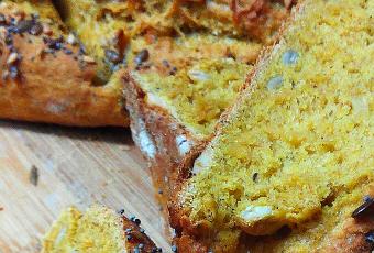 7. Barnizamos con agua las barras de pan, y añadimos una mezcla de semillas al gusto y quizás, si os apetece, un poco de orégano en hojas. Por ultimo, con un cuchillo bien afilado, le hacemos cortes superficiales en diagonal y horneamos a media altura, durante 25-30min. (hasta que esté dorado)