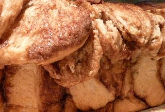Pasado el tiempo de reposo, precalentamos el horno a 190º. Pintamos la superficie del pan con un poco de nata de montar o leche y horneamos durante 25-30 minutos o hasta que esté dorado y al pinchar con un palillo salga limpio.