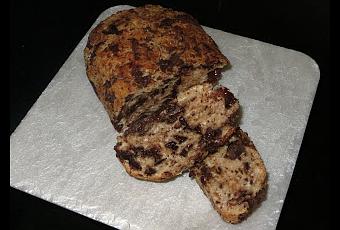 Ingredientes:- 250 gramos de harina de fuerza.- Un poco de sal- 1,5 gramos de levadura de panadero seca.- 150 mililitros de agua.- Una cucharadita de canela.- 100 gramos de chocolate negro en trozos pequeños.- 2 cucharadas de azúcar (opcional).Elaboración:Echáis en un bol todos los ingredientes excepto el chocolate y amasáis con el robot de cocina durante diez minutos. Luego añadís el chocolate y amasáis durante cinco minutos más. Lo echáis encima de la encimera y seguís amasando hasta que veis que todos los ingredientes están bien integrados.Colocáis en un bol y dejáis hasta que la levadura haga su efecto. Luego lo colocáis en un molde o en un papel de horno y lo metéis durante 30 minutos a 190ºC y ya está listo para degustar.