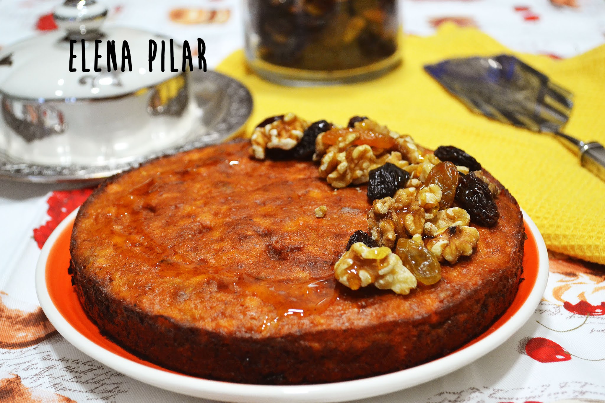 - Vertemos la mezcla en un molde de unos 16-18cm de diámetro, engrasado y con la base cubierta con papel vegetal. Horneamos 35-40 minutos a 180ºC. Dejamos enfriar por completo antes de desmoldar. Servimos decorado con un hilo de miel y frutos secos.
