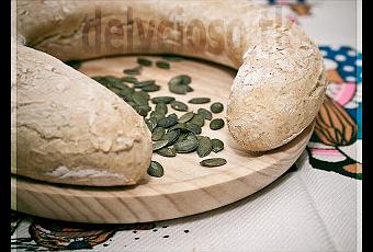 Elaboración de la Receta:Tamizamos la harina en un cuenco, añadimos la sal y la levadura prensada, mezclamos y añadimos el agua templada, seguimos mezclando y luego la pasamos a la encimera espolvoreada de harina y la seguimos trabajando. Añadimos las pipas de calabaza y amasamos por un par de minutos más. Formamos una bola con la masa y la dejamos reposar en un lugar seco y tapada con un paño húmedo durante 1h aproximadamente.