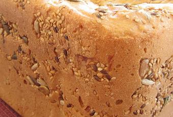 PREPARACIÓN:Poner todos los ingredientes en la cubeta de nuestra panificadora y seleccionar programa integral pan de 1 kilo.En terminar el tiempo de amasado y antes de que empieza a hornear pondremos unas pocas semillas por encima para que queden por fuera de nuestro pan.