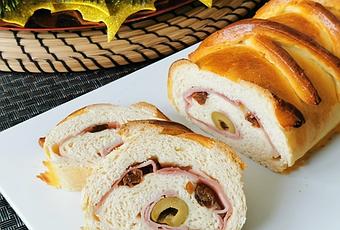 Es una receta de pan relleno de jamón ahumado, pasas y aceitunas. Tradicionalmente ese es el relleno pero seguramente encontremos en algunas familias otros tipos de rellenos.