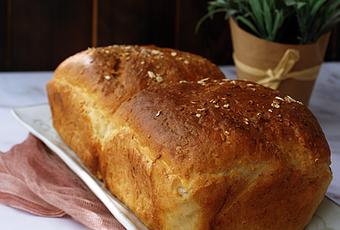 Una vez listo, pincelamos con leche y espolvoreamos unos copos de avena, metemos en el horno precalentado a 210ºC durante 15 minutos, bajamos la temperatura a 180ºC y dejamos otros 15-20 minutos más.Enfriamos sobre rejilla.