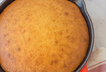Siempre que hago pan de maíz, me gusta hornearlo en la skillet, una sartén de hierro que me encanta y que le doy mucho uso, además es tan bonita que la puedes sacar a la mesa sin problema. Sí no tienes skillet puedes hornearlo en cualquier molde, redondo, cuadrado o rectángular sin ningún problema. Mi sartén es de 23 cm de diámetro para que te hagas una idea.