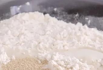 Añadir la levadura, leche, agua y mezclar hasta incorporar.