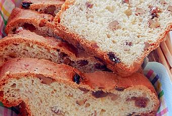 Metemos todos los líquidos en el vaso 2 minutos temp, 37º vel. 2 introducimos la levadura desmenuzada y mezclamos unos segundos más.Añadimos los solidos (menos pasas y nueces) y mezclamos a velocidad 6, 10 seg. Amasamos 2 minutos vaso cerrado, a velocidad espiga.Sacamos y estiramos y le ponemos las pasas y las nueces y distribuimos por toda la masa.Engrasamos un molde.Le damos a la masa, la forma del molde y dejamos reposamos la masa bien distribuida dentro, tapada con un paño de algodón hasta que duplique su volumen (unas dos horas) Precalentamos el horno a 160º turbo-ventilador o bien, si el horno lo ponemos con calor de arriba y abajo lo ponemos a 170º durante 50 minutos.Introducimos en él durante 1 hora si vemos que comienza a dorarse mucho por arriba lo cubrimos con una hoja de aluminio.Dejamos enfriar antes de desmoldar