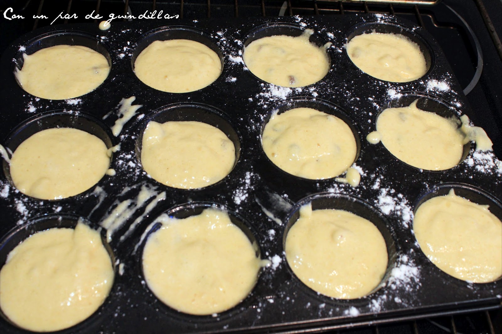una bandeja de magdalenas y repartimos la masa.