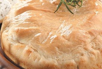 9. Coloca otro círculo de pasta, seguido del resto del pimiento, el romero y el queso de cabra. Empuja la pasta por los lados para fijarla bien. Cúbrela con plástico y déjala reposar durante 30 minutos.