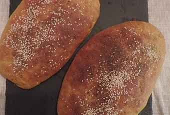 Barnizamos con agua las barras de pan y añadimos semillas al gusto, yo le he puesto, sésamo y hierbas provenzales. Por último, con un cuchillo bien afilado le hacemos cortes trasversales, (a mi se me ha olvidado) y horneamos a medial altura durante 25 o 30 minutos, o bien cuando veamos que está dorado.