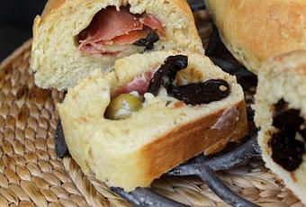 Pan de Tigre Relleno : Jamón, Aceitunas,Ciruelas Pasas y Queso (4 bollos)
