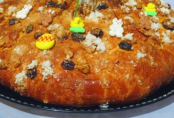 5- Pincelar con cuidado con huevo batido y espolvorear azúcar humedecido y unas poquitas de nueces y pasas. Hornear, según tamaño.